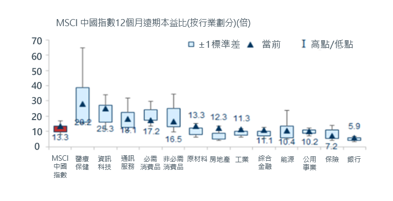 圖2:MSCI中國指數的個別行業提供理想入場點