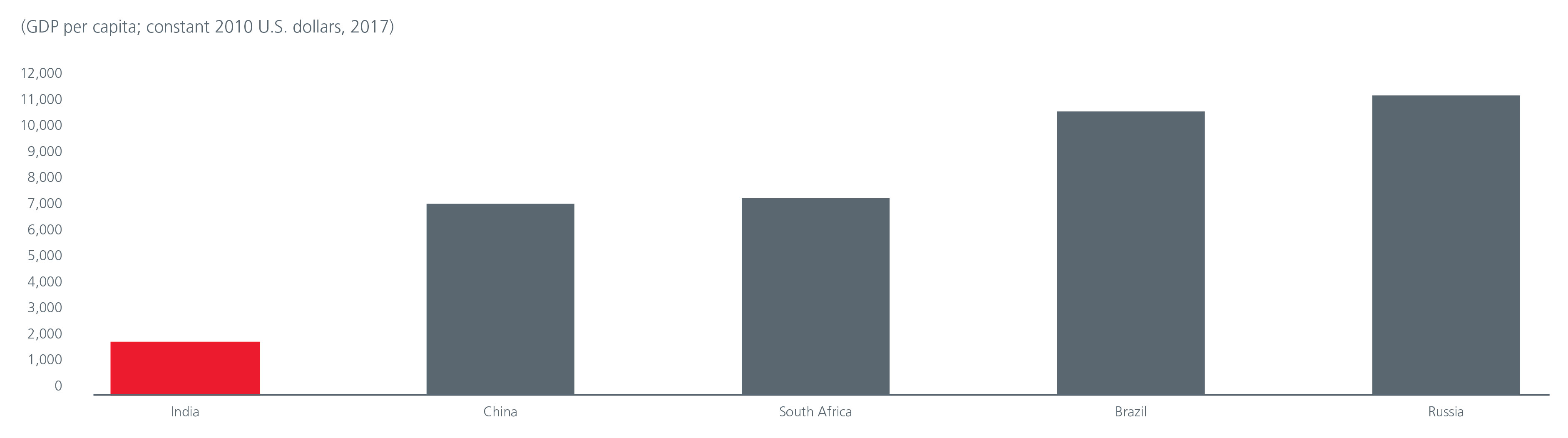 1 Reserve Bank of India, Ministry of Finance, CLSA, 2019 2 World Bank, World Development Indicators, 2017