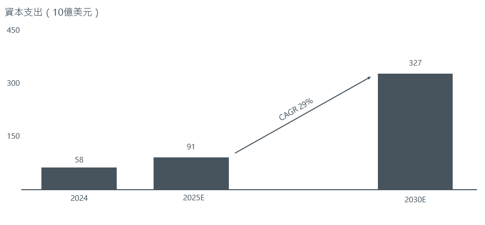 圖3:預計中國人工智慧資本開支在2030年將達到3,300億美元