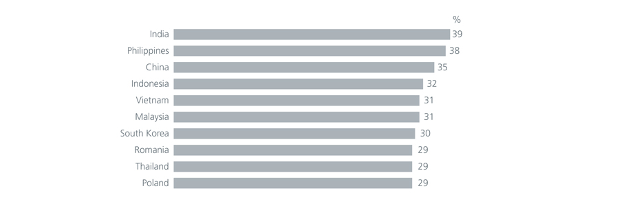 Rising affluence across Asia is also evidenced by the increasing number of mass affluent4. In major South East Asian markets, the mass affluent account for up to 40% of household wealth.5 In Thailand, for example, household wealth has risen at an annual rate of 8.9% from 2000-2017 with the top wealth segments (ultra-high net worth and billionaires) registering the fastest growth.6 According to research firm Capgemini, total assets of Thailand’s high net worth individuals rose 13% to USD 548 billion in 2017 – the second-fastest growth in the Asia-Pacific region after Indonesia. This rising wealth trend is expected to continue in the coming years (see Fig 1).