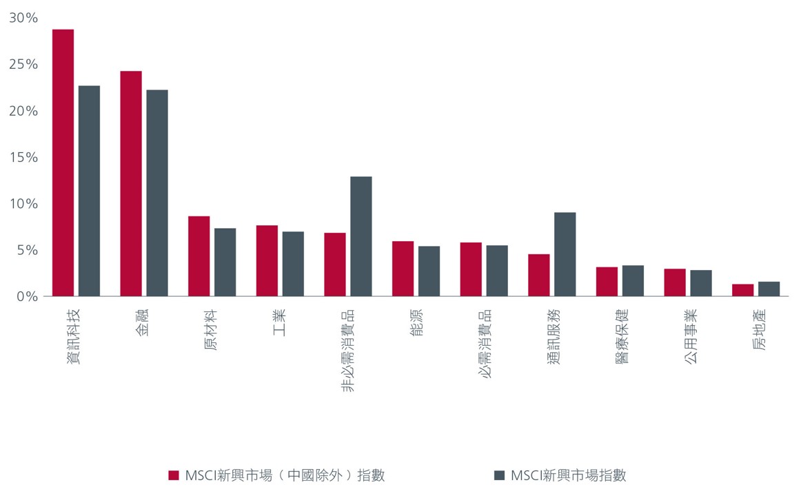 圖3:新興市場及新興市場(中國除外)指數的產業分佈